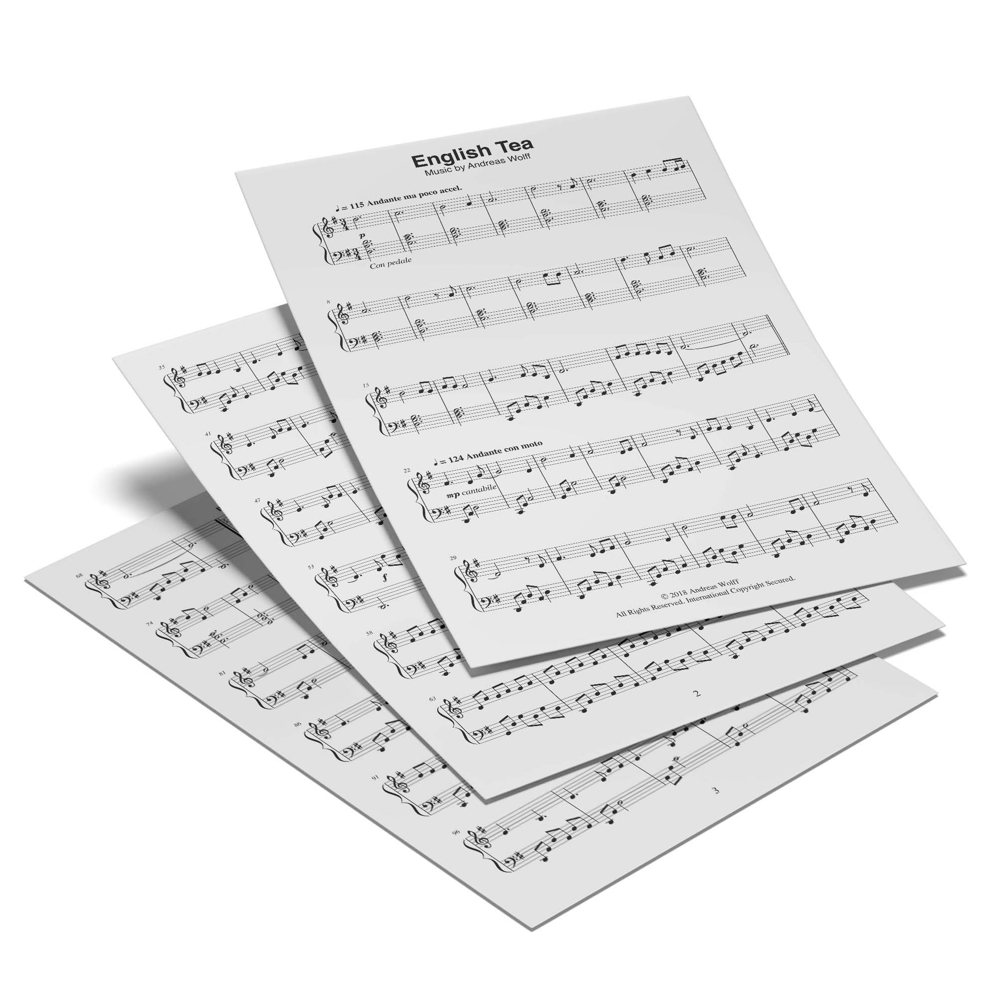 The piano sheet music of 'English Tea', from Andreas Wolff's second EP 'Wayfaring'.