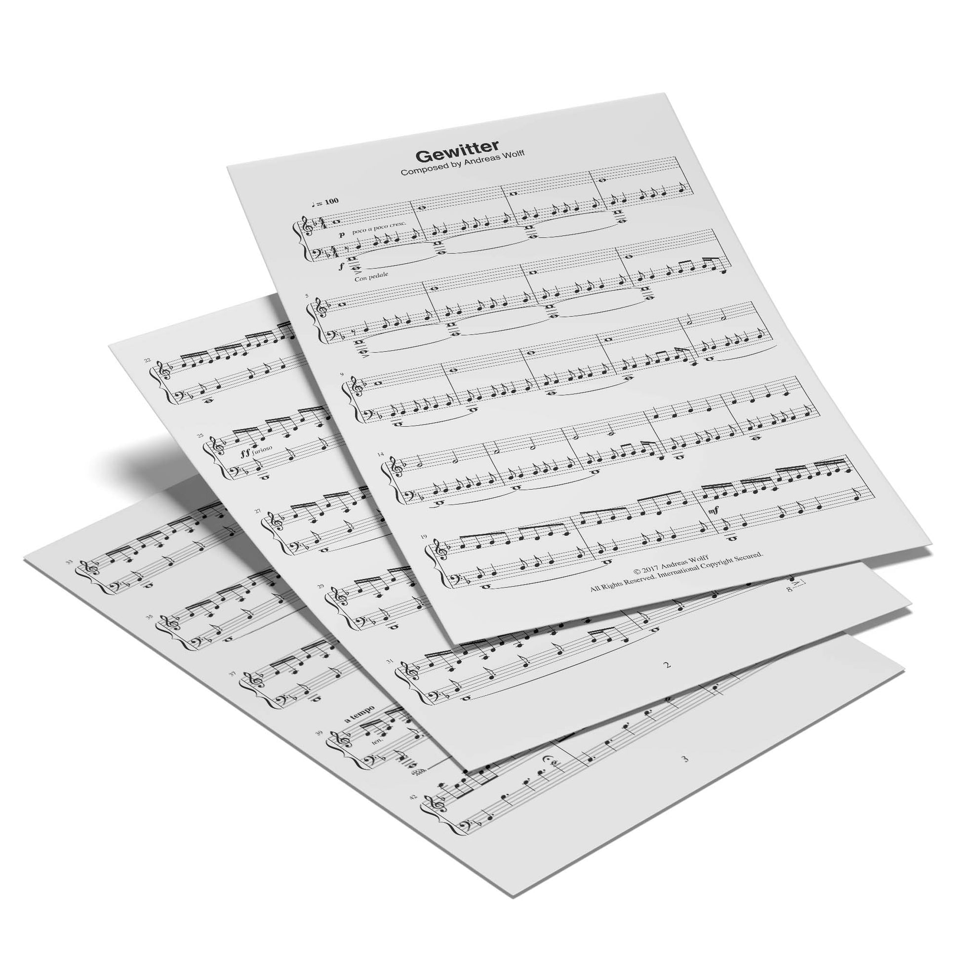 The piano sheet music of 'Gewitter', from Andreas Wolff's first EP 'Alone In The Wild'.