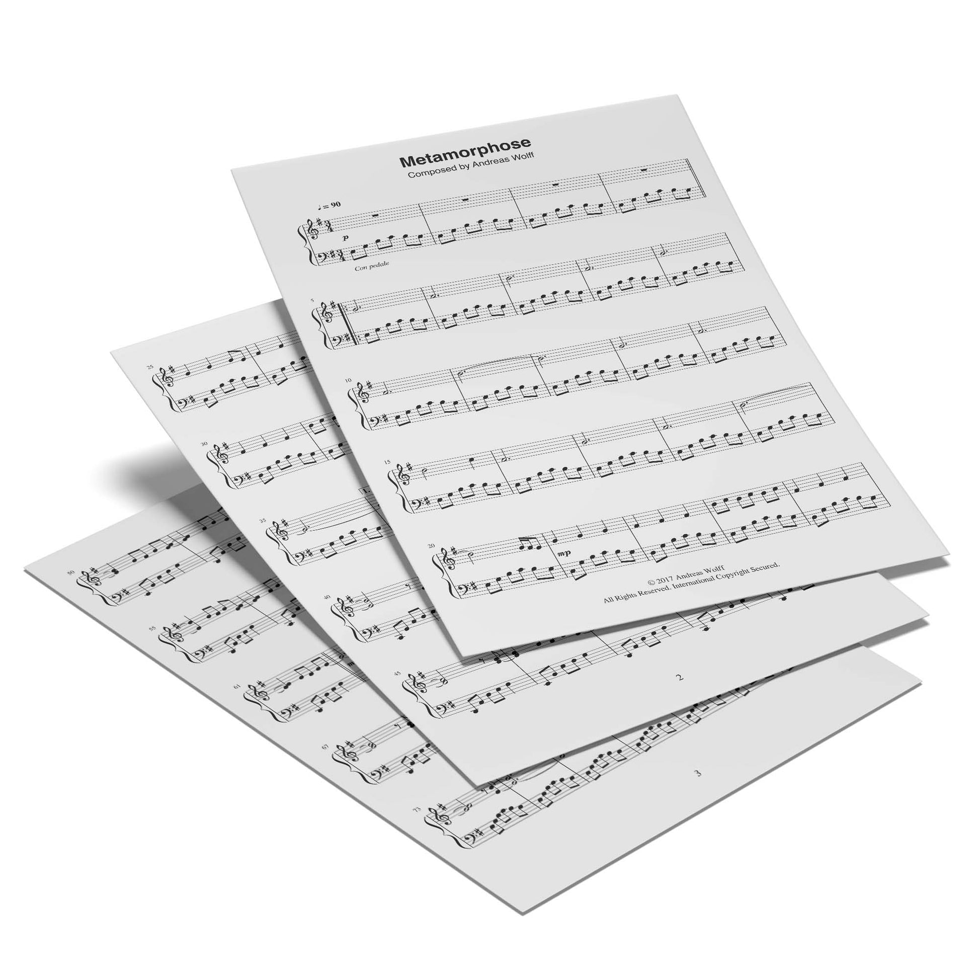 The piano sheet music of 'Metamorphose', from Andreas Wolff's first EP 'Alone In The Wild'.