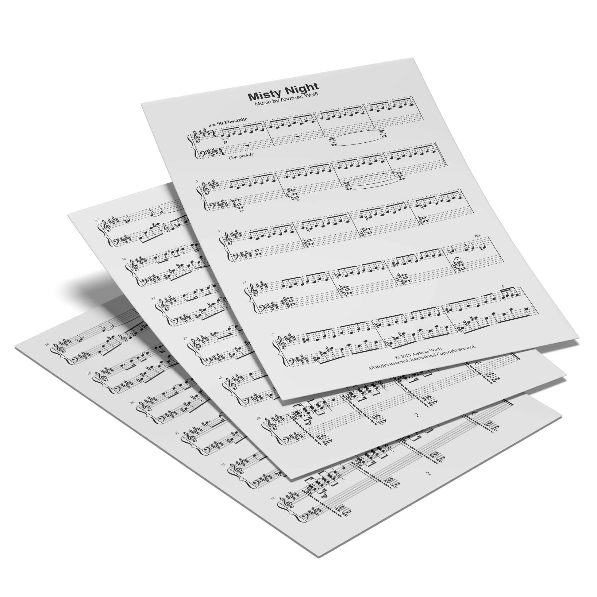 The piano sheet music of 'Misty Night', from Andreas Wolff's second EP 'Wayfaring'.