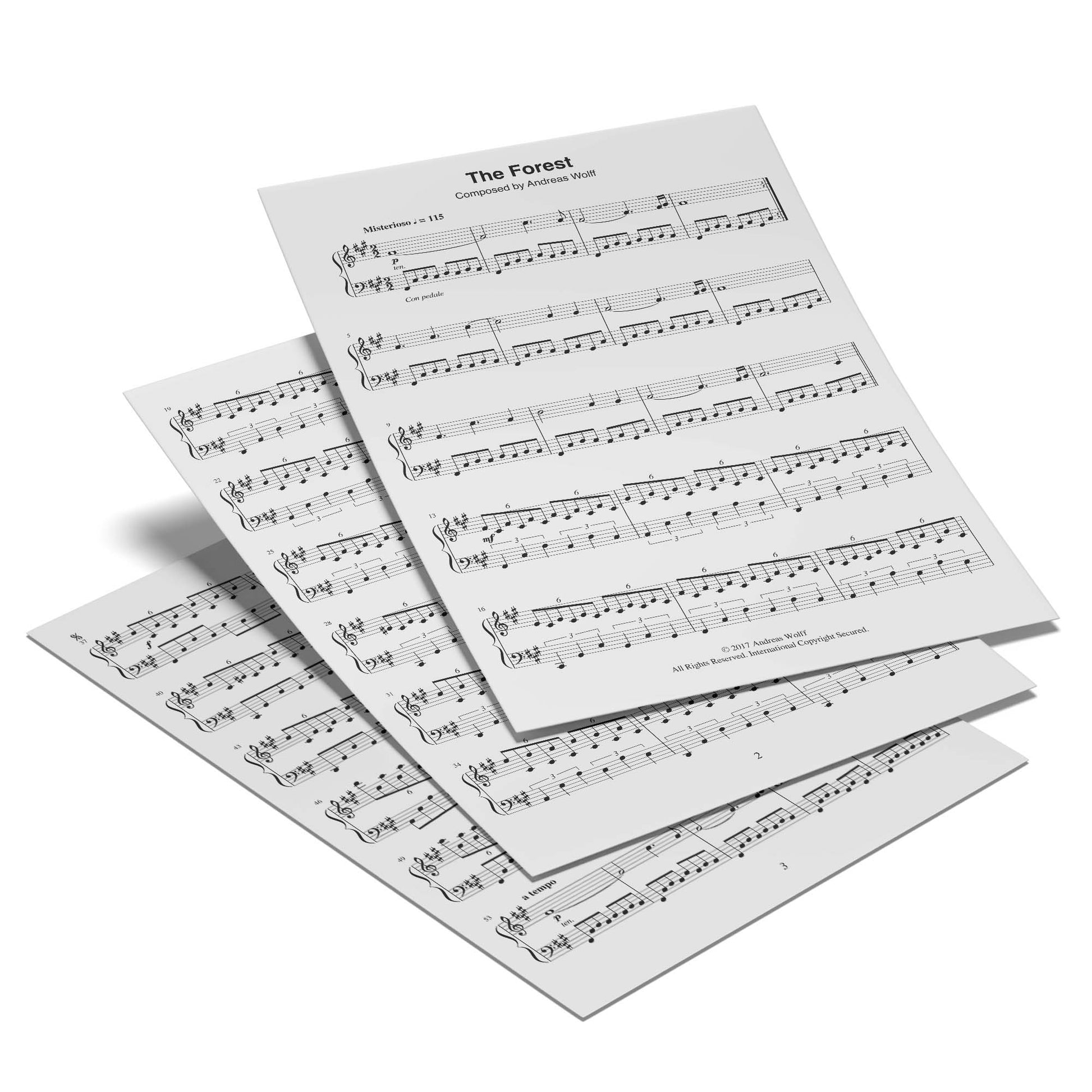 The piano sheet music of 'The Forest', from Andreas Wolff's first EP 'Alone In The Wild'.
